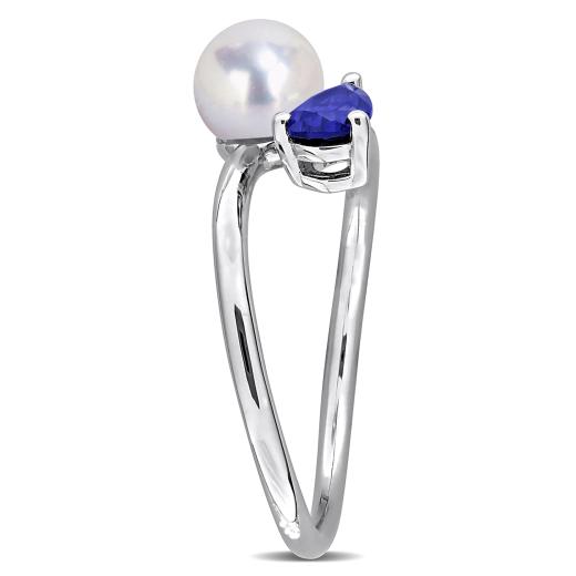 Timeless and elegant, this created blue sapphire and 6–6.5mm white freshwater cultured pearl fashion ring brings refined beauty to any ensemble. The deep blue sparkle of created sapphire complements the soft luster of a white freshwater pearl, all set in classic sterling silver—perfect for day or evening wear.