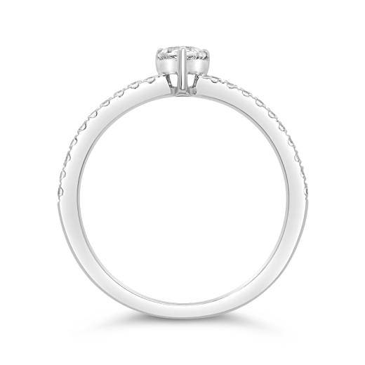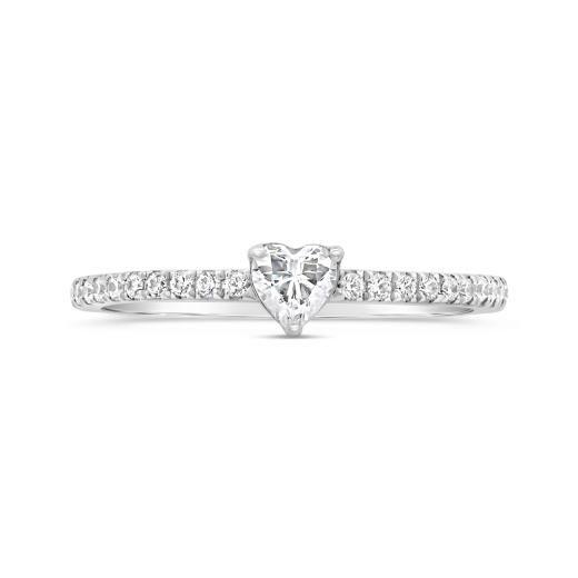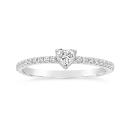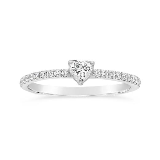 Elegant and romantic, this New Brilliance ring features a heart-shaped lab grown diamond as its centerpiece, totaling 0.40 CTW. The diamond is beautifully set in a secure prong setting, while the slender sterling silver band is accented with a row of sparkling diamonds for added brilliance. The combination of the heart motif and shimmering details creates a timeless design that symbolizes love and commitment.