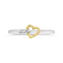 A sleek two-tone design makes this Diamond Promise Ring a standout piece. The polished sterling silver band is accented with a warm 10K yellow gold open-heart motif, symbolizing love and commitment. Three sparkling diamonds are set along the curve of the heart, adding brilliance and elegance to the modern design. Perfect as a promise ring or a meaningful gift, this piece blends timeless beauty with contemporary charm—ideal for everyday wear or special occasions.